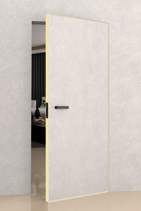 Дверное полотно ИНВИЗИБЛ Л-П, замок, врезка под скрытые петли 2 шт., шампань кромка АЛ (алюминиевая) с 4-х торцов