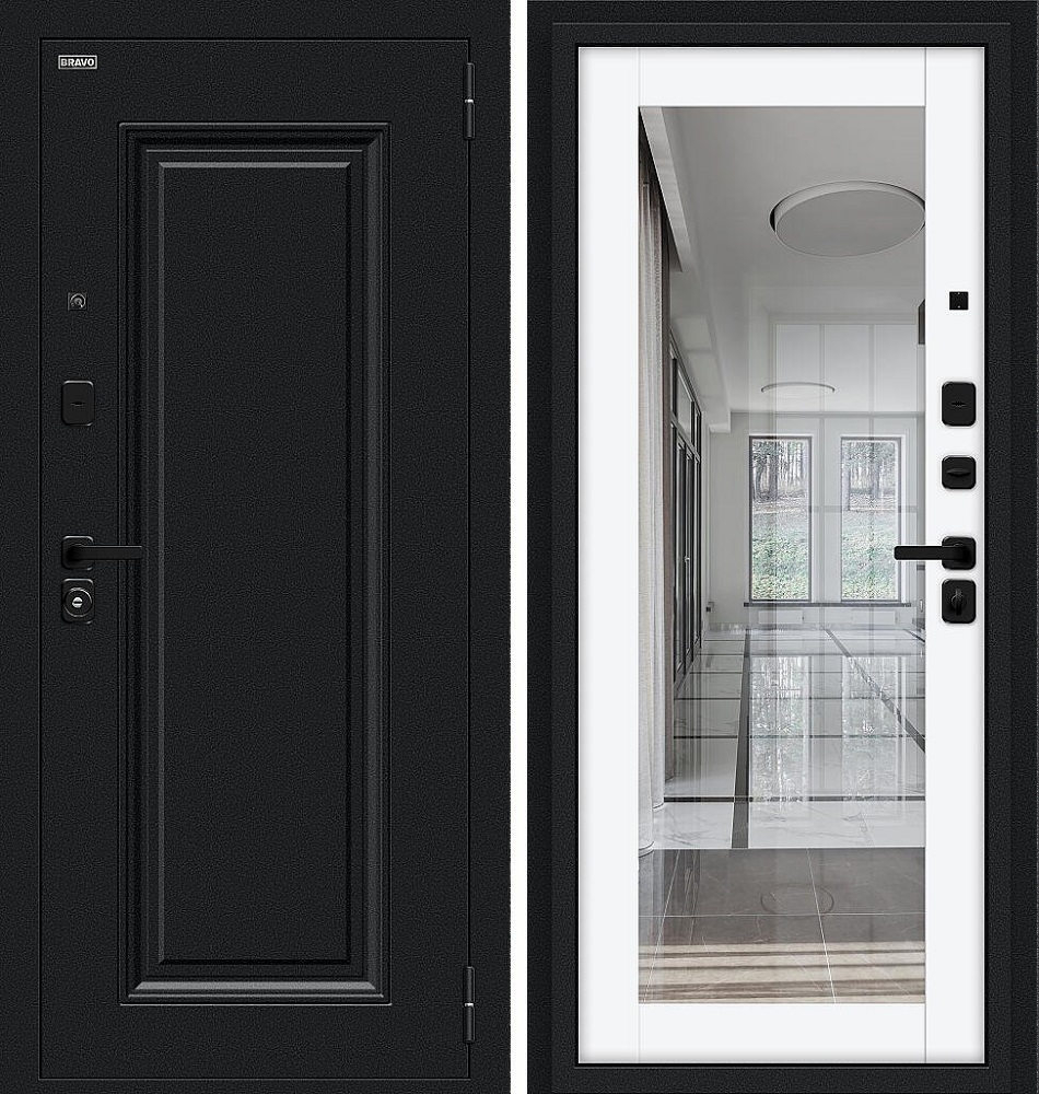 Входная Дверь модель Флэш МФ/SBlac цвет Букле черное/White Silk — современная модель, в которой сочетаются прочность, стильный дизайн и долгий срок службы. Конструкция тщательно продумана, поэтому легко выдерживает высокие механические нагрузки. Дополнительным залогом безопасности является надежная замковая система. Устойчива такая входная дверь и к агрессии среды. Плюс, она обеспечивает комфортный микроклимат в доме за счет отличной тепло- и звукоизоляции. Внутренняя отделка выполнена из износостойких эстетичных материалов, что позволяет полотну гармонировать с интерьером.