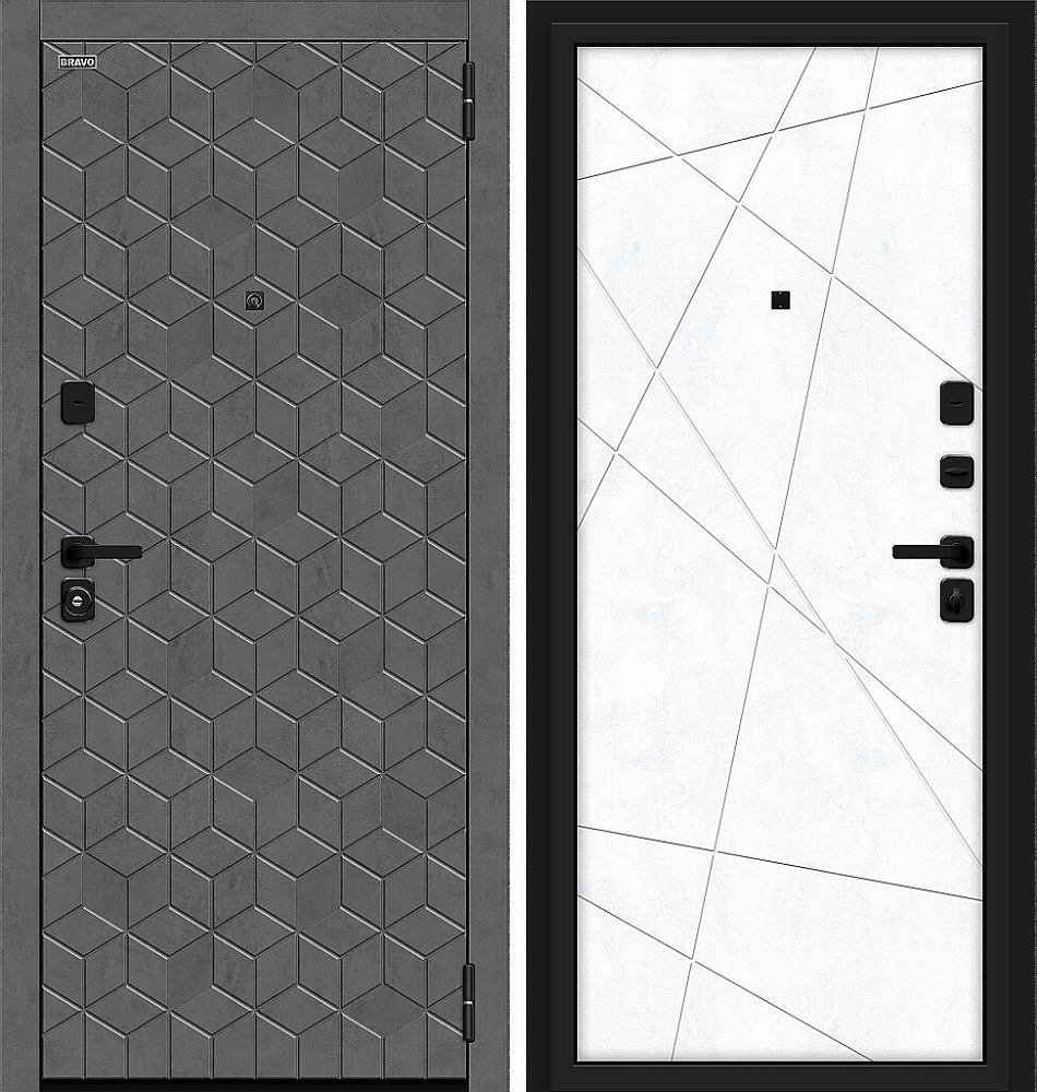 Входная Дверь модель Кьюб/SBlack цвет Slate Art/Snow Art — современная модель, в которой сочетаются прочность, стильный дизайн и долгий срок службы. Конструкция тщательно продумана, поэтому легко выдерживает высокие механические нагрузки. Дополнительным залогом безопасности является надежная замковая система. Устойчива такая входная дверь и к агрессии среды. Плюс, она обеспечивает комфортный микроклимат в доме за счет отличной тепло- и звукоизоляции. Внутренняя отделка выполнена из износостойких эстетичных материалов, что позволяет полотну гармонировать с интерьером.
