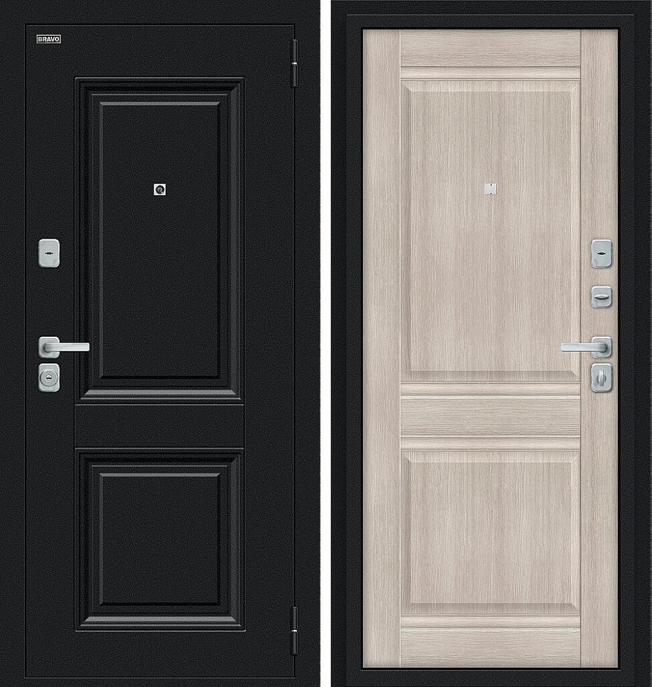 Входная Дверь модель Некст МФ/BChrome цвет Букле черное/Cappuccino Melinga — современная модель, в которой сочетаются прочность, стильный дизайн и долгий срок службы. Конструкция тщательно продумана, поэтому легко выдерживает высокие механические нагрузки. Дополнительным залогом безопасности является надежная замковая система. Устойчива такая входная дверь и к агрессии среды. Плюс, она обеспечивает комфортный микроклимат в доме за счет отличной тепло- и звукоизоляции. Внутренняя отделка выполнена из износостойких эстетичных материалов, что позволяет полотну гармонировать с интерьером.