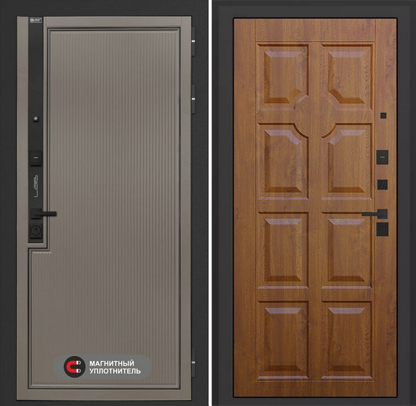 LABIRINT Входная металлическая дверь Лаб-1 Про панель №17 цвет голден ОАК — надежная модель, которая станет не только защитой от несанкционированного проникновения, но и украшением жилища. Конструкция повышенной прочности хорошо справляется с любыми деформационными нагрузками, а презентабельный вид полотну придают продуманная внутренняя отделка и внешнее покрытие. Все материалы устойчивы к износу и агрессивным воздействиям среды. Также входные двери фабрики LabDoor обладают прекрасной шумо- и теплоизоляцией.