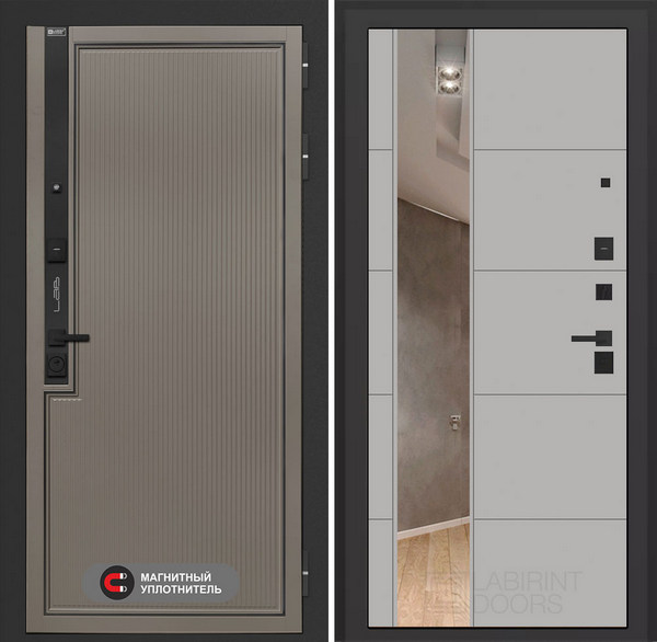 LABIRINT Входная металлическая дверь Лаб-1 Про панель №19 цвет грей софт — надежная модель, которая станет не только защитой от несанкционированного проникновения, но и украшением жилища. Конструкция повышенной прочности хорошо справляется с любыми деформационными нагрузками, а презентабельный вид полотну придают продуманная внутренняя отделка и внешнее покрытие. Все материалы устойчивы к износу и агрессивным воздействиям среды. Также входные двери фабрики LabDoor обладают прекрасной шумо- и теплоизоляцией.