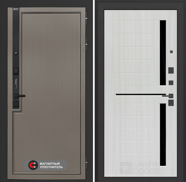 LABIRINT Входная металлическая дверь Лаб 1 Про панель №2 цвет сандал белый — надежная модель, которая станет не только защитой от несанкционированного проникновения, но и украшением жилища. Конструкция повышенной прочности хорошо справляется с любыми деформационными нагрузками, а презентабельный вид полотну придают продуманная внутренняя отделка и внешнее покрытие. Все материалы устойчивы к износу и агрессивным воздействиям среды. Также входные двери фабрики LabDoor обладают прекрасной шумо- и теплоизоляцией.