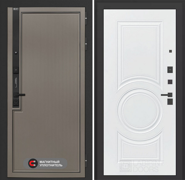 LABIRINT Входная металлическая дверь Лаб-1 Про панель №23 цвет белый софт — надежная модель, которая станет не только защитой от несанкционированного проникновения, но и украшением жилища. Конструкция повышенной прочности хорошо справляется с любыми деформационными нагрузками, а презентабельный вид полотну придают продуманная внутренняя отделка и внешнее покрытие. Все материалы устойчивы к износу и агрессивным воздействиям среды. Также входные двери фабрики LabDoor обладают прекрасной шумо- и теплоизоляцией.