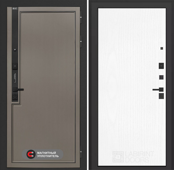 LABIRINT Входная металлическая дверь Лаб-1 Про панель №7 цвет белое дерево — надежная модель, которая станет не только защитой от несанкционированного проникновения, но и украшением жилища. Конструкция повышенной прочности хорошо справляется с любыми деформационными нагрузками, а презентабельный вид полотну придают продуманная внутренняя отделка и внешнее покрытие. Все материалы устойчивы к износу и агрессивным воздействиям среды. Также входные двери фабрики LabDoor обладают прекрасной шумо- и теплоизоляцией.