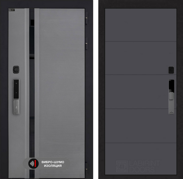 LABIRINT Входная металлическая дверь Пиано Смарт 2.0 панель №13 цвет графит софт — надежная модель, которая станет не только защитой от несанкционированного проникновения, но и украшением жилища. Конструкция повышенной прочности хорошо справляется с любыми деформационными нагрузками, а презентабельный вид полотну придают продуманная внутренняя отделка и внешнее покрытие. Все материалы устойчивы к износу и агрессивным воздействиям среды. Также входные двери фабрики LabDoor обладают прекрасной шумо- и теплоизоляцией.
