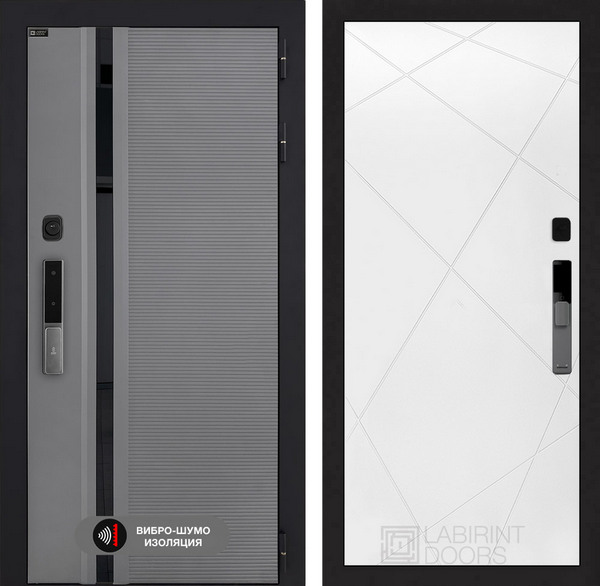 LABIRINT Входная металлическая дверь Пиано Смарт 2.0 панель №24 цвет белый софт — надежная модель, которая станет не только защитой от несанкционированного проникновения, но и украшением жилища. Конструкция повышенной прочности хорошо справляется с любыми деформационными нагрузками, а презентабельный вид полотну придают продуманная внутренняя отделка и внешнее покрытие. Все материалы устойчивы к износу и агрессивным воздействиям среды. Также входные двери фабрики LabDoor обладают прекрасной шумо- и теплоизоляцией.