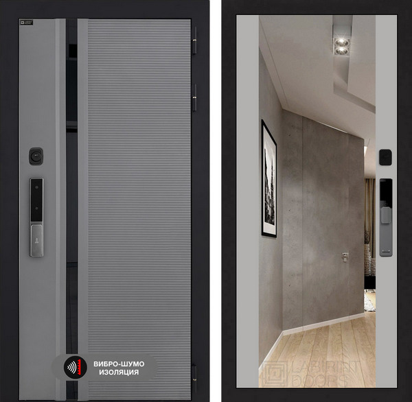 LABIRINT Входная металлическая дверь Пиано Смарт 2.0 панель Зеркало Максимум цвет грей софт — надежная модель, которая станет не только защитой от несанкционированного проникновения, но и украшением жилища. Конструкция повышенной прочности хорошо справляется с любыми деформационными нагрузками, а презентабельный вид полотну придают продуманная внутренняя отделка и внешнее покрытие. Все материалы устойчивы к износу и агрессивным воздействиям среды. Также входные двери фабрики LabDoor обладают прекрасной шумо- и теплоизоляцией.