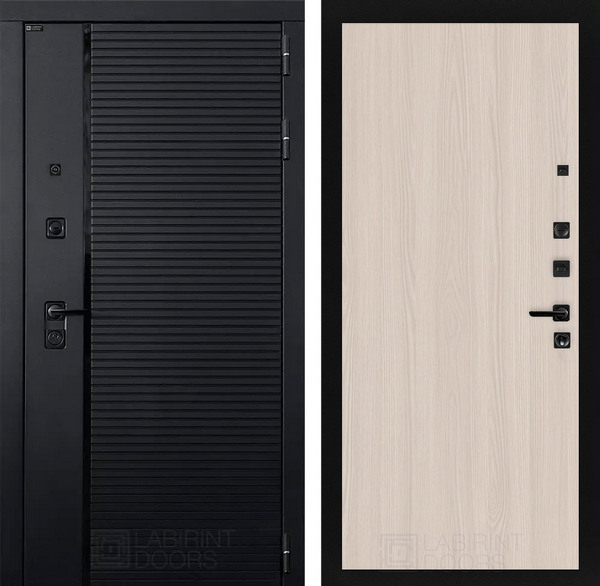 LABIRINT Входная металлическая дверь Пиано панель №5 цвет ясень светлый — надежная модель, которая станет не только защитой от несанкционированного проникновения, но и украшением жилища. Конструкция повышенной прочности хорошо справляется с любыми деформационными нагрузками, а презентабельный вид полотну придают продуманная внутренняя отделка и внешнее покрытие. Все материалы устойчивы к износу и агрессивным воздействиям среды. Также входные двери фабрики LABIRINT обладают прекрасной шумо- и теплоизоляцией.