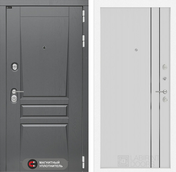LABIRINT Входная металлическая дверь Платинум панель №10 цвет белый софт рельеф — надежная модель, которая станет не только защитой от несанкционированного проникновения, но и украшением жилища. Конструкция повышенной прочности хорошо справляется с любыми деформационными нагрузками, а презентабельный вид полотну придают продуманная внутренняя отделка и внешнее покрытие. Все материалы устойчивы к износу и агрессивным воздействиям среды. Также входные двери фабрики LabDoor обладают прекрасной шумо- и теплоизоляцией.