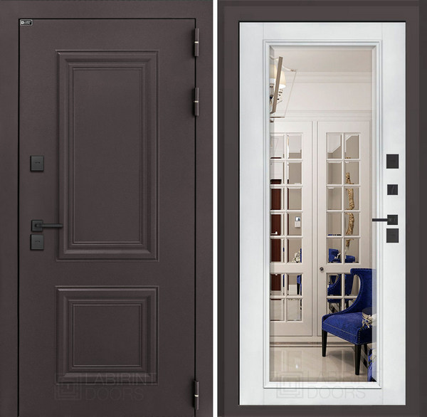 LABIRINT Входная металлическая дверь Полярис Лайт панель Зеркало Фацет цвет белый софт — надежная модель, которая станет не только защитой от несанкционированного проникновения, но и украшением жилища. Конструкция повышенной прочности хорошо справляется с любыми деформационными нагрузками, а презентабельный вид полотну придают продуманная внутренняя отделка и внешнее покрытие. Все материалы устойчивы к износу и агрессивным воздействиям среды. Также входные двери фабрики LabDoor обладают прекрасной шумо- и теплоизоляцией.