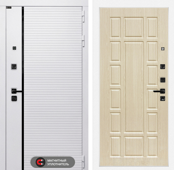 LABIRINT Входная металлическая дверь Роял панель №12 цвет белёный дуб — надежная модель, которая станет не только защитой от несанкционированного проникновения, но и украшением жилища. Конструкция повышенной прочности хорошо справляется с любыми деформационными нагрузками, а презентабельный вид полотну придают продуманная внутренняя отделка и внешнее покрытие. Все материалы устойчивы к износу и агрессивным воздействиям среды. Также входные двери фабрики LABIRINT обладают прекрасной шумо- и теплоизоляцией.
