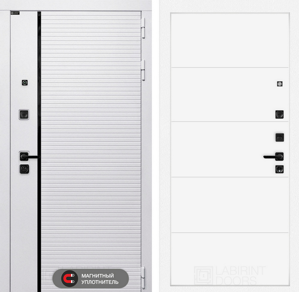 LABIRINT Входная металлическая дверь Роял панель №13 цвет белый софт — надежная модель, которая станет не только защитой от несанкционированного проникновения, но и украшением жилища. Конструкция повышенной прочности хорошо справляется с любыми деформационными нагрузками, а презентабельный вид полотну придают продуманная внутренняя отделка и внешнее покрытие. Все материалы устойчивы к износу и агрессивным воздействиям среды. Также входные двери фабрики LABIRINT обладают прекрасной шумо- и теплоизоляцией.