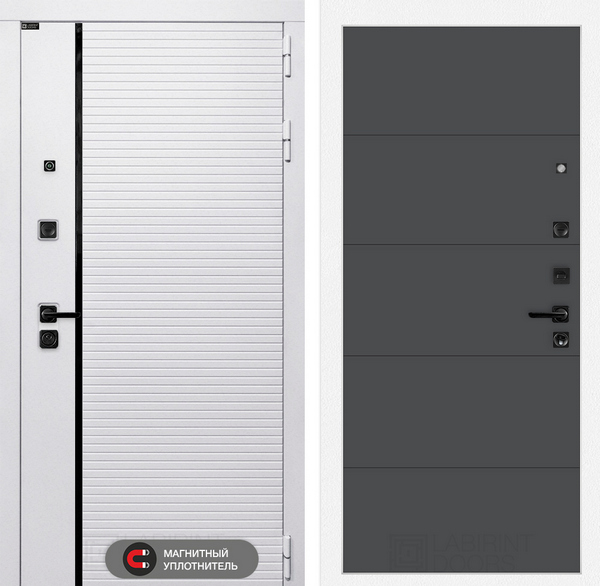LABIRINT Входная металлическая дверь Роял панель №13 цвет графит софт— надежная модель, которая станет не только защитой от несанкционированного проникновения, но и украшением жилища. Конструкция повышенной прочности хорошо справляется с любыми деформационными нагрузками, а презентабельный вид полотну придают продуманная внутренняя отделка и внешнее покрытие. Все материалы устойчивы к износу и агрессивным воздействиям среды. Также входные двери фабрики LABIRINT обладают прекрасной шумо- и теплоизоляцией.