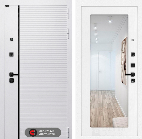 LABIRINT Входная металлическая дверь Роял панель №18 цвет белое дерево — надежная модель, которая станет не только защитой от несанкционированного проникновения, но и украшением жилища. Конструкция повышенной прочности хорошо справляется с любыми деформационными нагрузками, а презентабельный вид полотну придают продуманная внутренняя отделка и внешнее покрытие. Все материалы устойчивы к износу и агрессивным воздействиям среды. Также входные двери фабрики LABIRINT обладают прекрасной шумо- и теплоизоляцией.