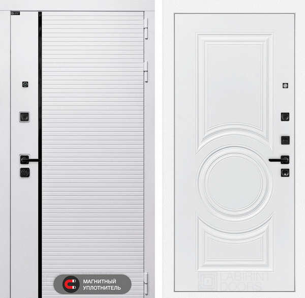 LABIRINT Входная металлическая дверь Роял панель №23 цвет белый софт — надежная модель, которая станет не только защитой от несанкционированного проникновения, но и украшением жилища. Конструкция повышенной прочности хорошо справляется с любыми деформационными нагрузками, а презентабельный вид полотну придают продуманная внутренняя отделка и внешнее покрытие. Все материалы устойчивы к износу и агрессивным воздействиям среды. Также входные двери фабрики LABIRINT обладают прекрасной шумо- и теплоизоляцией.