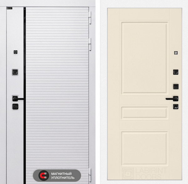 LABIRINT Входная металлическая дверь Роял панель №3 цвет крем софт — надежная модель, которая станет не только защитой от несанкционированного проникновения, но и украшением жилища. Конструкция повышенной прочности хорошо справляется с любыми деформационными нагрузками, а презентабельный вид полотну придают продуманная внутренняя отделка и внешнее покрытие. Все материалы устойчивы к износу и агрессивным воздействиям среды. Также входные двери фабрики LABIRINT обладают прекрасной шумо- и теплоизоляцией.