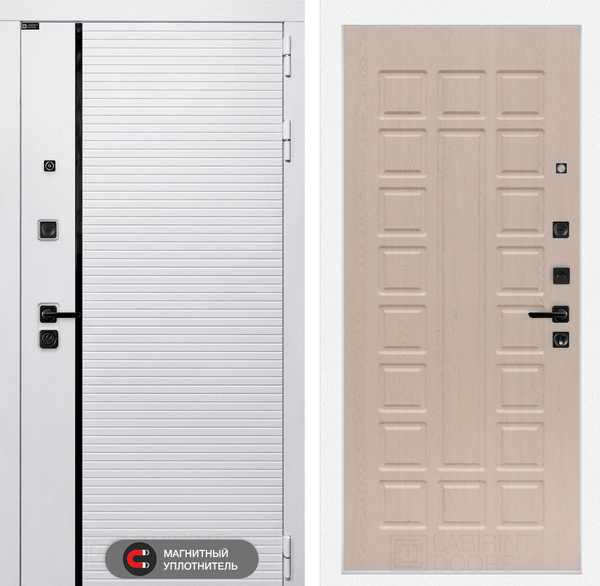 LABIRINT Входная металлическая дверь ROYAL панель №4 цвет белёный дуб — надежная модель, которая станет не только защитой от несанкционированного проникновения, но и украшением жилища. Конструкция повышенной прочности хорошо справляется с любыми деформационными нагрузками, а презентабельный вид полотну придают продуманная внутренняя отделка и внешнее покрытие. Все материалы устойчивы к износу и агрессивным воздействиям среды. Также входные двери фабрики LabDoor обладают прекрасной шумо- и теплоизоляцией.