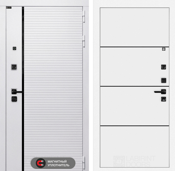 LABIRINT Входная металлическая дверь Роял панель №25 цвет белый софт — надежная модель, которая станет не только защитой от несанкционированного проникновения, но и украшением жилища. Конструкция повышенной прочности хорошо справляется с любыми деформационными нагрузками, а презентабельный вид полотну придают продуманная внутренняя отделка и внешнее покрытие. Все материалы устойчивы к износу и агрессивным воздействиям среды. Также входные двери фабрики LABIRINT обладают прекрасной шумо- и теплоизоляцией.